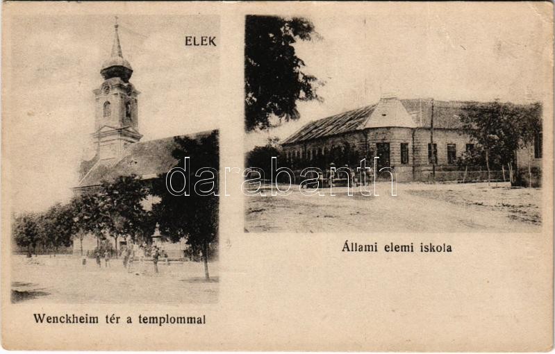 1927 Elek (Gyula), Wenckheim tér és templom, állami elemi iskola (EK)