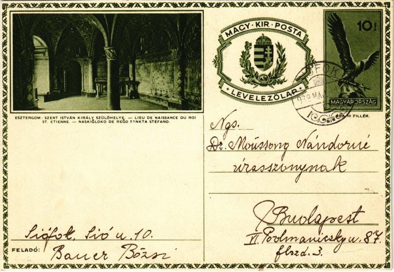 1939 Esztergom, Szent István király szülőhelye. Magy. Kir. Posta Level...