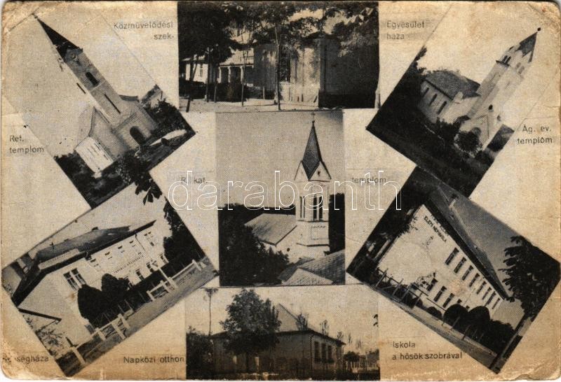 1944 Tengelic, Közművelődési egyesület székháza, Római katolikus templom, Református templom, Evangélikus templom, Községháza, Napközi otthon, Iskola, Hősök szobra, emlékmű. Mosonyi Endre kiadása (EB)