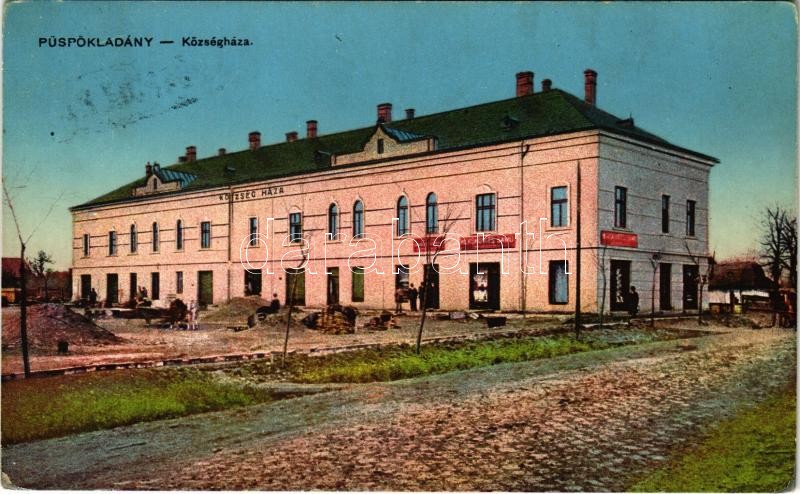 Püspökladány, Községháza, Herskovits Samu üzlete, piac. Vasúti Levelez...