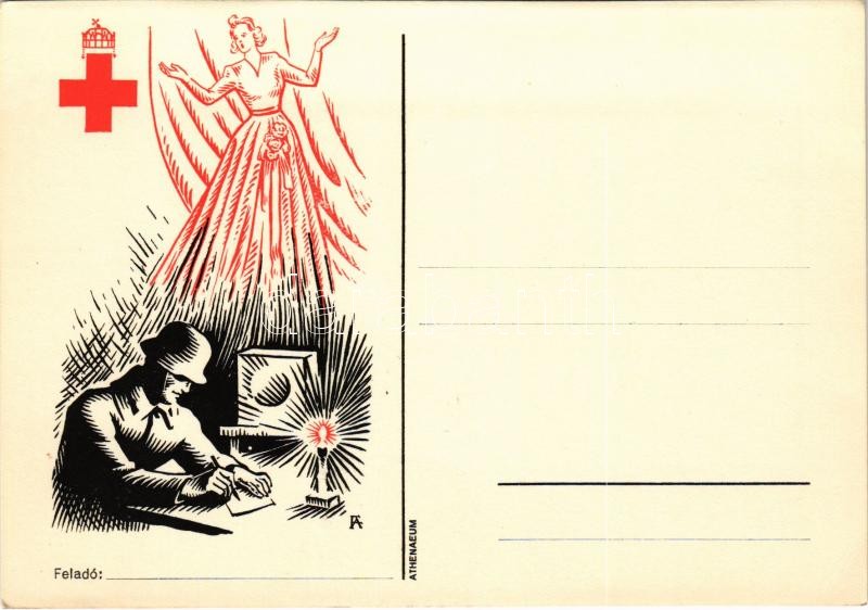 Vöröskeresztes propaganda lap katonával. Athenaeum / Red Cross nurse w...
