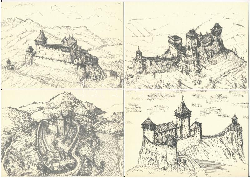 10 db MODERN megíratlan képeslap régi várakkal. Medveczky Tamás Könyvk...
