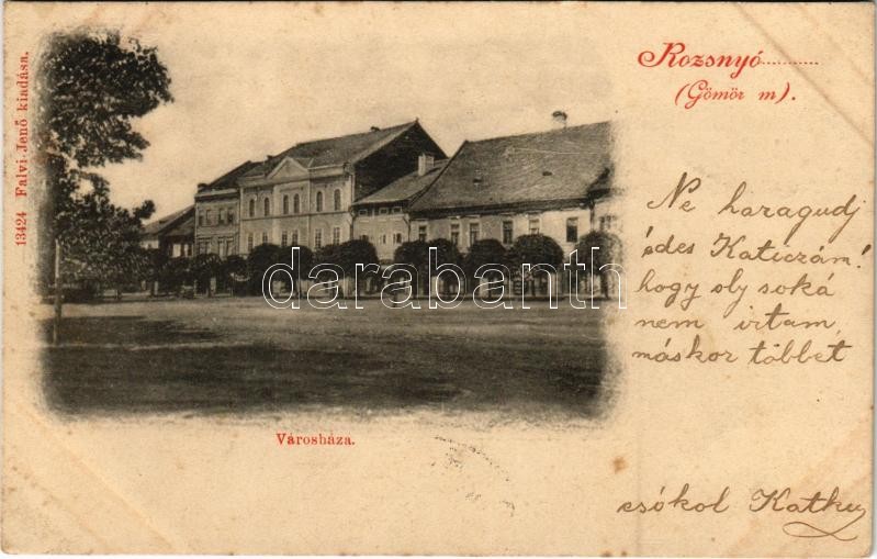 1899 (Vorläufer) Rozsnyó, Roznava (Gömör); Városháza. Falvi Jenő / town hall