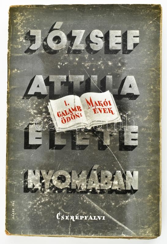 Galamb Ödön: Makói évek. Függelék. József Attila válogatott, kiadatlan versei (Radnóti Miklós jegyzetével). József Attila élete nyomában I. Bp., 1941, Cserépfalvi, 173 p. Oldalszámozáson kívüli, fekete-fehér fotókkal, facsimile kézirattal. A fedőlapot Gábor Pál tervezte. Kiadói papírkötés, kissé sérült, kopott, illusztrált kiadói papírborítóval, helyenként kissé sérült lapszélekkel, nagyrészt felvágatlan lapokkal.