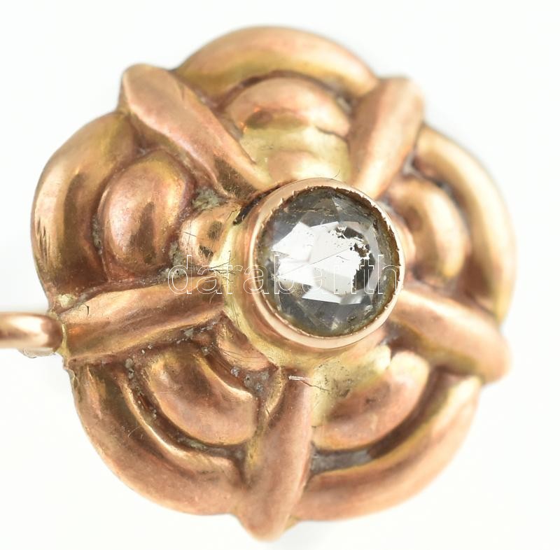 14k arany (Au) fülbevaló párban + gyűrű m: 62. mesterséges kövekkel, össz bruttó 4,7 g