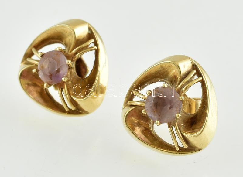Arany (Au) 14K art deco fülbevalópár, rózsakvarccal, jelzett, d: 1,5 c...