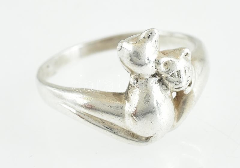 Ezüst(Ag) macskás gyűrű, jelzett, méret: 59, nettó: 3,8 g
