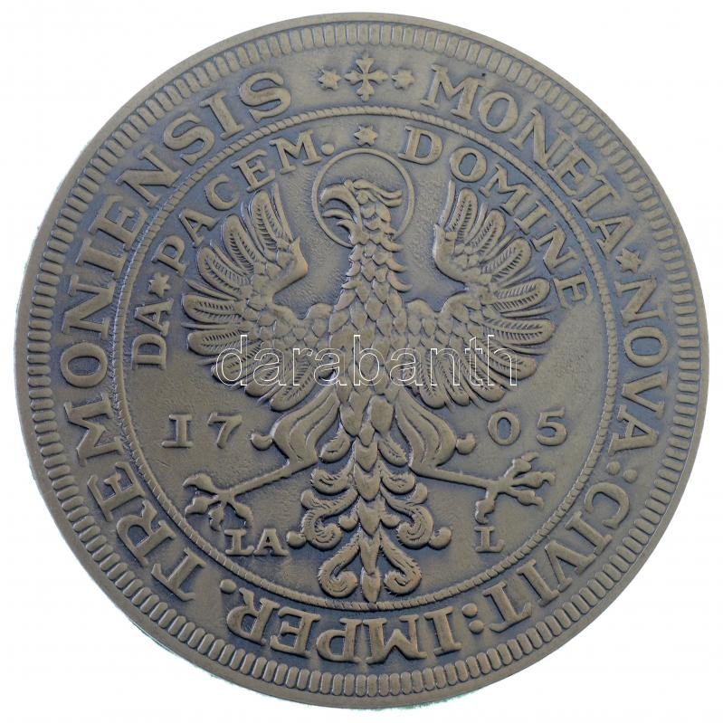 Description: DN "Moneta Nova Civit - Imper. Tremoniensis - In Pacem Domine - 1705" fém emlékérem, hátoldalán filcborítással (80mm) T:1-