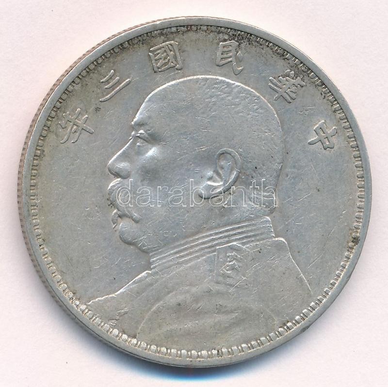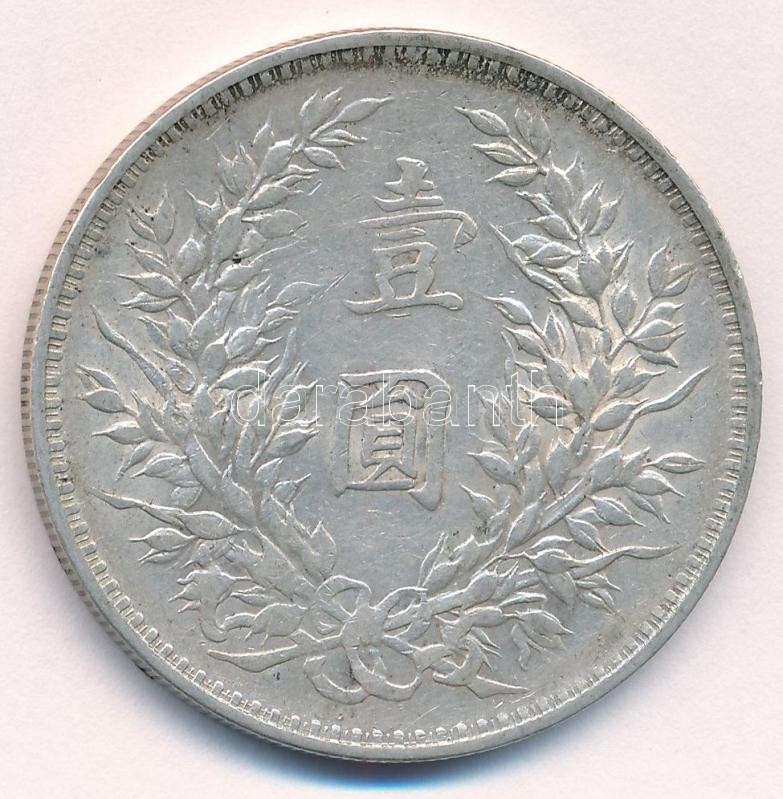 Kína 1914. 1$ (1Y) Ag "Yüan Shihkai" 6 karakter (26,84g) T:3