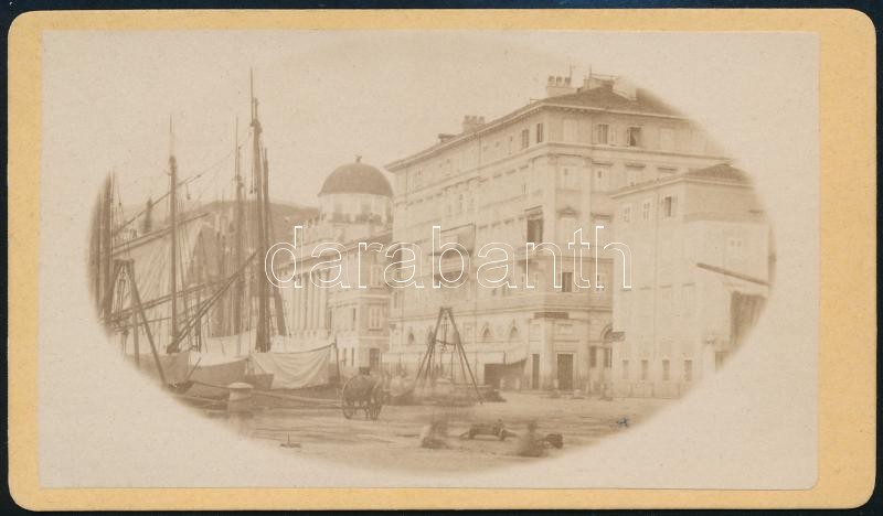 cca 1870 Trieszt, kikötőrészlet, keményhátú fotó Scrinzi műterméből, 6...