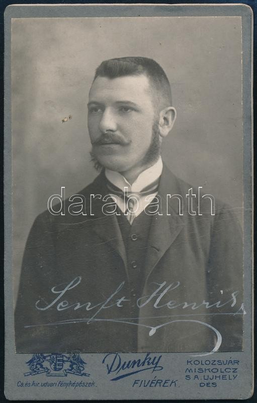 cca 1900 Senft Henrik aláírt fotója. vizitkártya Dunky fivérek