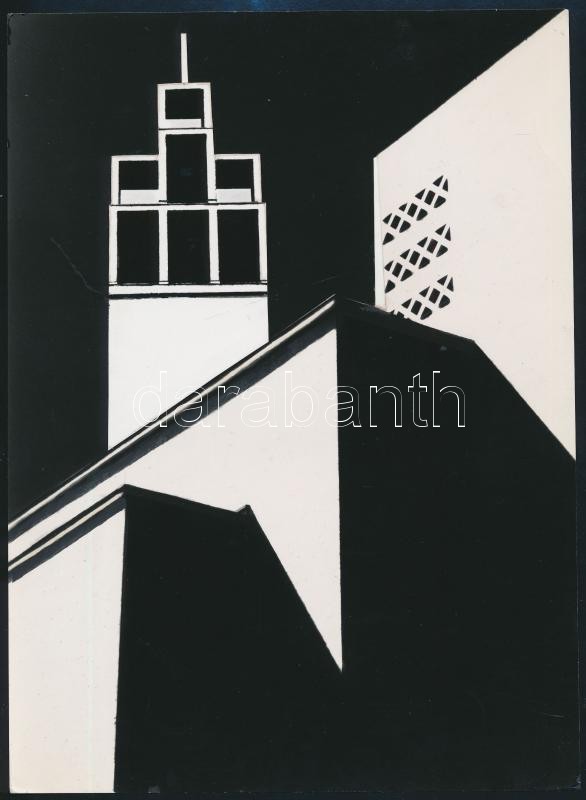 Description: cca 1976 Gebhardt György (1910-1993) budapesti fotóművész hagyatékából, aláírt vintage fotóművészeti alkotás (Architektúra), a magyar fotográfia avantgarde korszakából, 24x17,5 cm