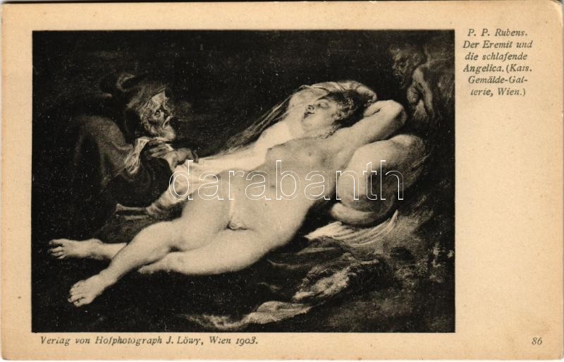 Der Eremit und die schlafende Angelica / Erotic nude lady art postcard. Kais. Gemälde-Galerie Wien. Verlag v. Hofphotograph J. Löwy s: Rubens (EK)