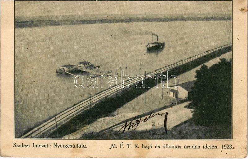 1928 Nyergesújfalu, Szalézi Intézet, vasútvonal és MFTR hajóállomás áradás idején (1923) (vágott / cut)