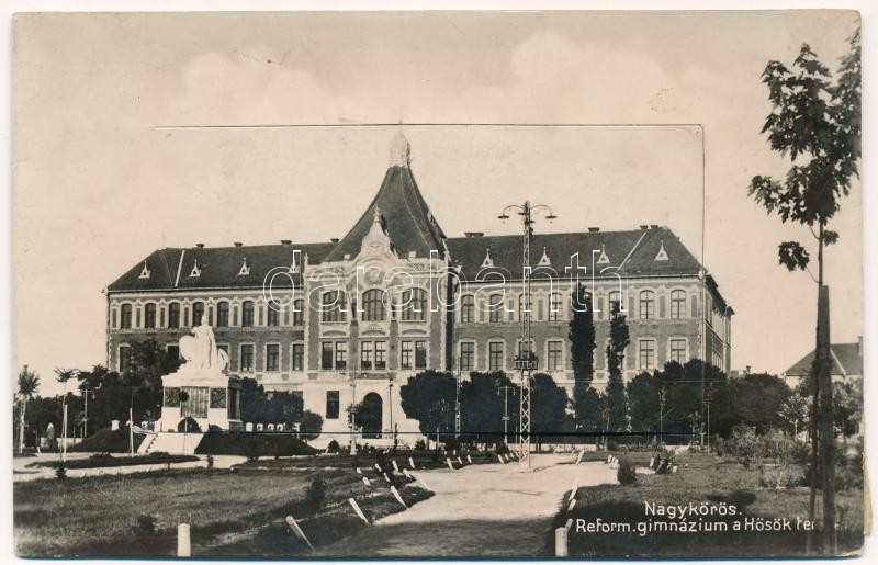 1932 Nagykőrös, Református gimnázium, Hősök tere és szobor. leporellol...