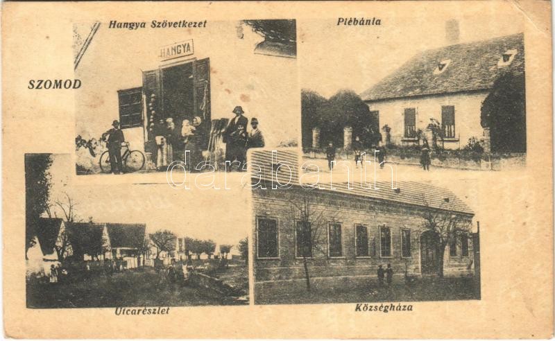 1933 Szomód, Plébánia, utca részlet, községháza, Hangya szövetkezet üz...