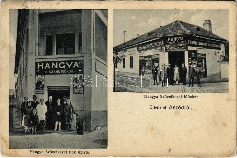 Aszód, Hangya szövetkezet fiók üzlete és főüzlete, Kristály ásványvíz ...