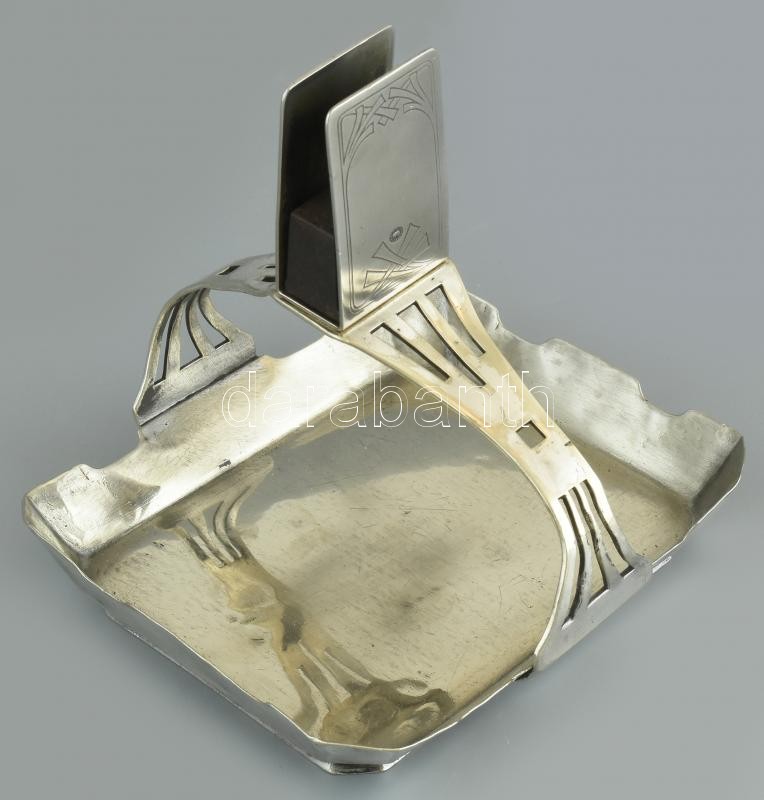 Magyar Világ kávéház jelzett szecessziós alpakka hamutartó szép állapo...