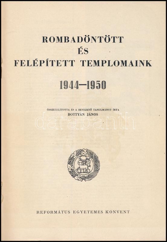 Rombadöntött és felépített templomaink 1944-1950. Összeáll. és a bevez... https://www.darabanth.com/en/407-Online-auction/407.0/Books/Books-Architecture-Art~2000007/Rombadontott-es-felepitett-templomaink-1944-1950-Osszeall-es-a-bevezeto-tanulmanyt-irta~II2519530