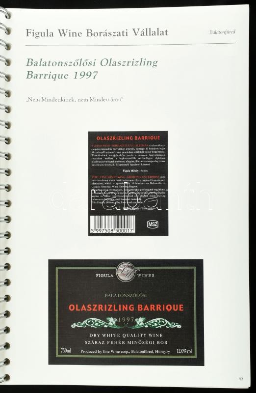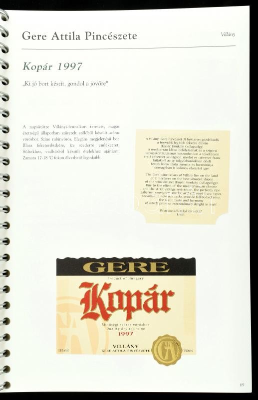 "Ezredvégi üzenet egy palack borban." Bp., 1999, Papyrus. Benne ismert borászokkal (Bock, Degenfeld, Gere Attila, Figula,Takler, Thummerer...stb.), és borcímkékkel. Kiadói spirálozott papírkötés, a hátsó műanyag borító a spirálkötéstől részben elvált.