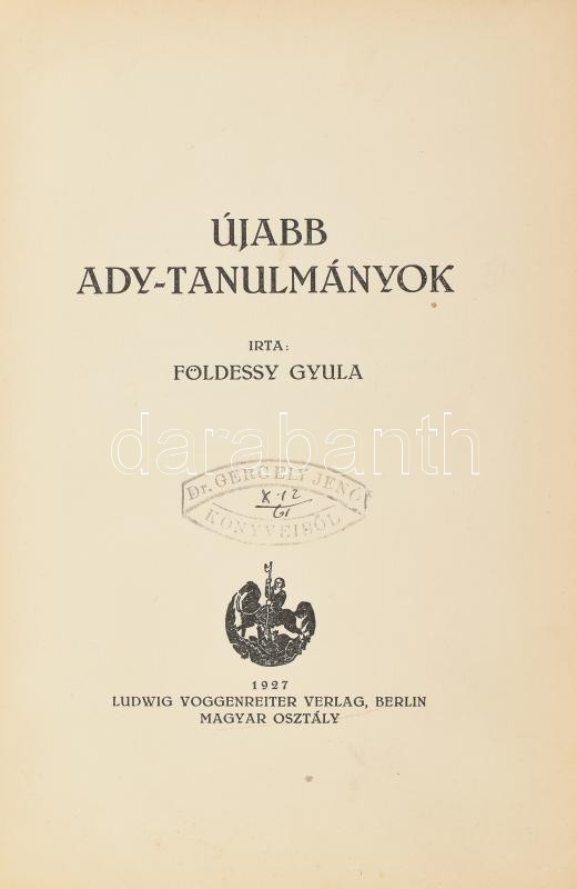 https://www.darabanth.com/en/407-Online-auction/407.0/Books/Books-Other-rarities~2000021/Foldessy-Gyula-Ujabb-Ady-tanulmanyok-Berlin-1927-Ludwig-Voggenreiter-Verlag-Magyar-Osztaly-~II2516566