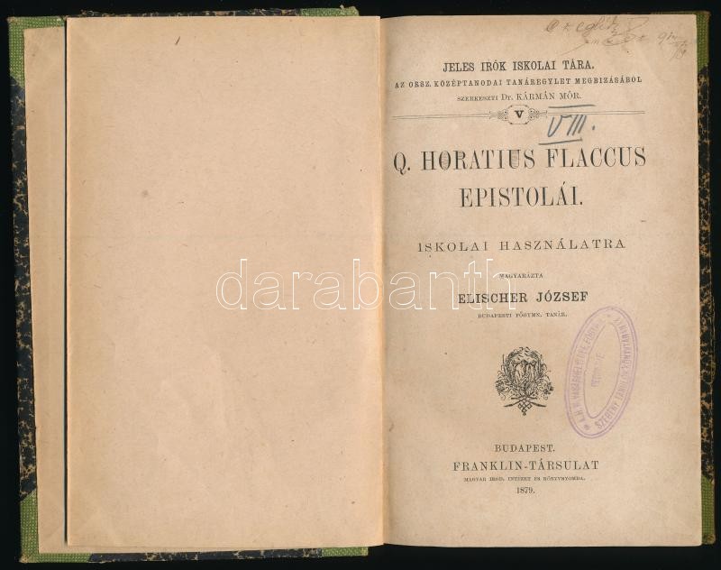 https://www.darabanth.com/en/407-Online-auction/407.0/Books/Books-Other-rarities~2000021/Horatius-Flaccus-Epistolai-magyarazza-Elischer-Jozsef-Bp-1879-Franklin-191p-Kiadoi-felvC3~II2519799
