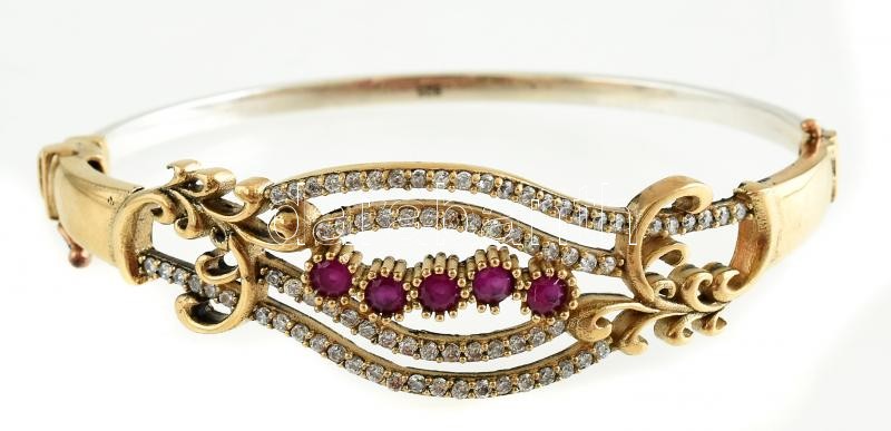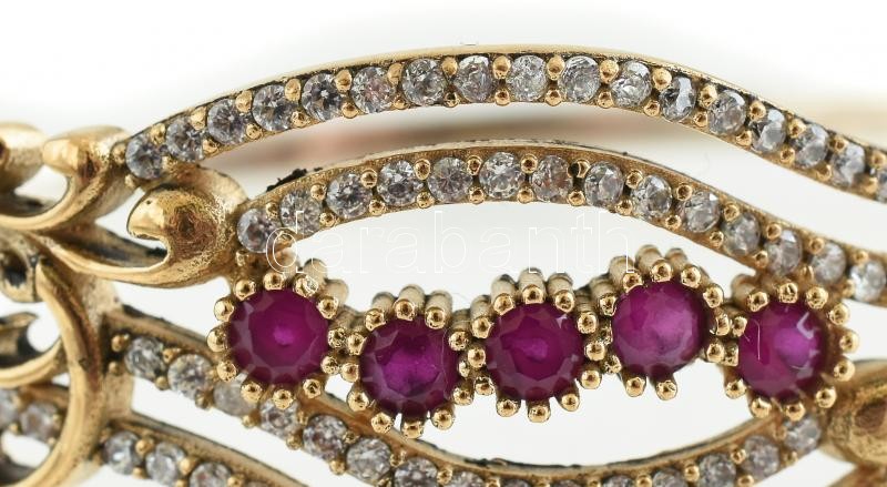 Aranyozott ezüst(Ag) karperec gránát kövekkel, jelzett, 6×5,5 cm, bruttó: 15,89 g