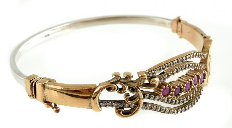 Aranyozott ezüst(Ag) karperec gránát kövekkel, jelzett, 6×5,5 cm, brut...