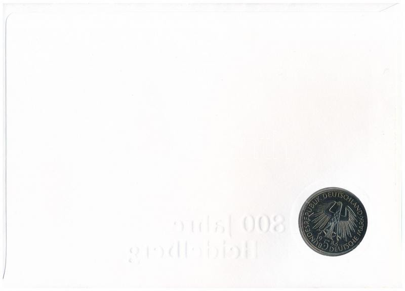 Description: NSZK 1986D 5M Cu-Ni "600 éves a Heidelberg Egyetem" érmés borítékban, első napi bélyegzéses bélyeggel T:1- FRG 1986D 5 Mark Cu-Ni "600th Anniversary - Heidelberg University" in coin envelope with first day of issue stamp and cancellation C:AU Krause KM#164