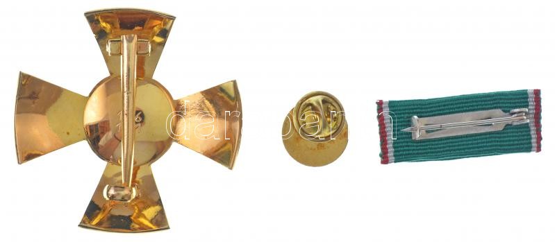 1991. "Magyar Köztársasági Érdemrend tisztikeresztje, polgári tagozat" zománcozott, aranyozott kitüntetés, hátlapi tű fémjel nélkül, szalagsávval, miniatűrrel, eredeti adományozói tokban T:1 Hungary 1991. "Order of Merit of the Hungarian Republic, Officer's Cross, Civil Grade" enamelled, gilt decoration, pin without hallmark, with service ribbon and miniature in original case C:UNC NMK 739.