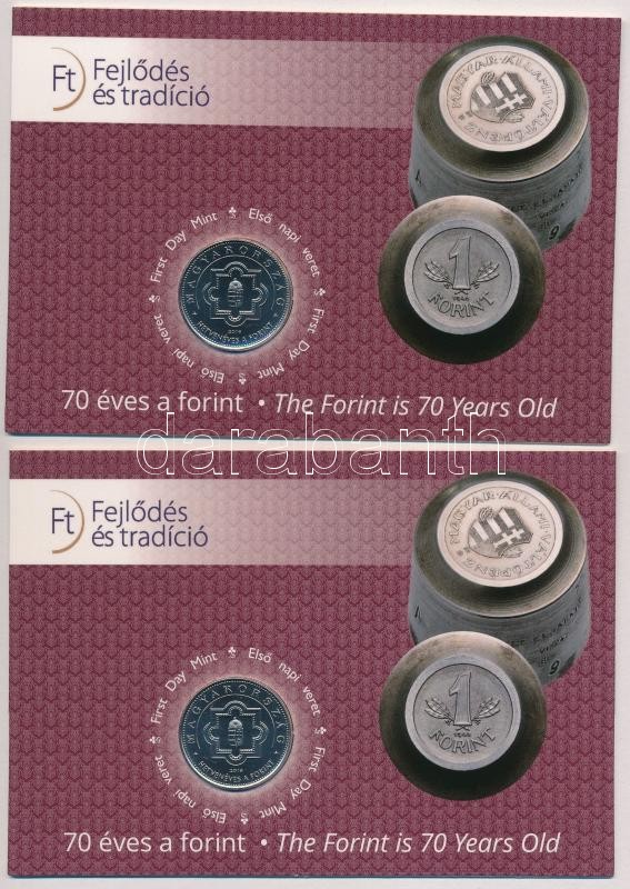 https://www.darabanth.com/en/407-Online-auction/407.0/Numismatics/Hungarian-coins-and-coins-with-Hungarian-mint-marks~1500001/2016-50Ft-Cu-Ni-70-eves-a-forint-elso-napi-veret-sorszamozott-emleklapon-2x-sorszamkovetC5~II2520522