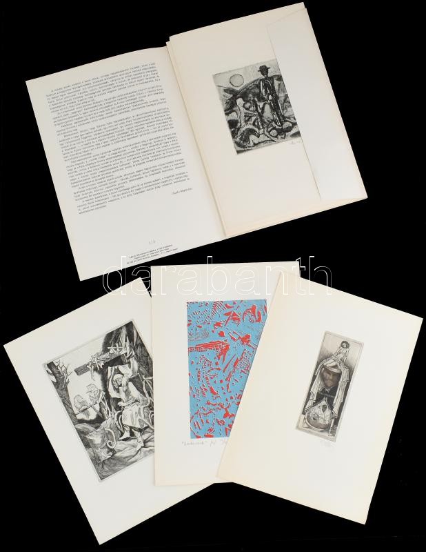 1985 I n Memoriam Stettner Béla (1928-1984.) Bp., (1985) K(isgrafika) B(arátok) Köre, (Datorg-ny.), 15 t. 14 metszet jelzett, különféle technikákkal, közte rézmetszet, szitanyomat, fametszet, linómetszet, 19x11 cm és 7x4 cm közötti méretben. A művészek között Csorba Simon László (1943-): "Emberünk", szitanyomat, papír, jelzett, számozott (10./300), 19x11 cm munkájával valamint Badacsonyi Sándor, Müller Árpád, König Róbert, Stefanovits Péter, Sulyok Gabriella, Vén Zoltán stb. grafikáival. Supka Magdolna előszavával. Kiadói papírmappa, jó állapotban. Számozott (010./300) példány.