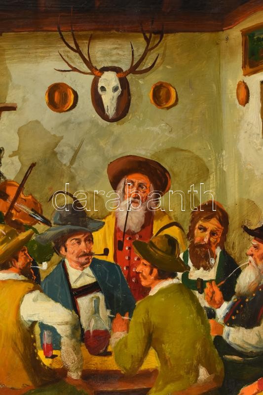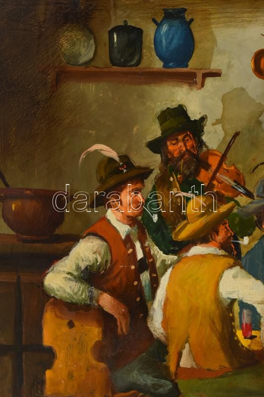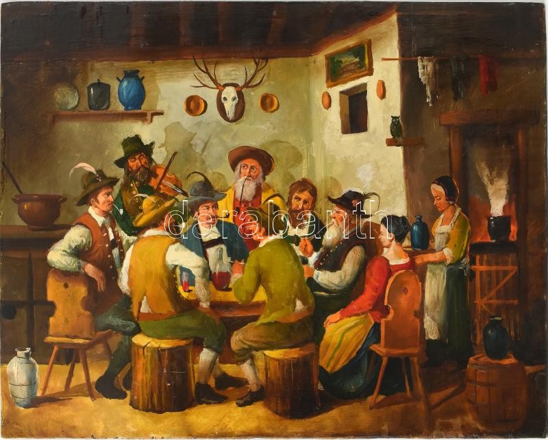 Jelzés nélkül: Mulatozók. Olaj, fa. Széleinél kissé sérült. 57×72 cm