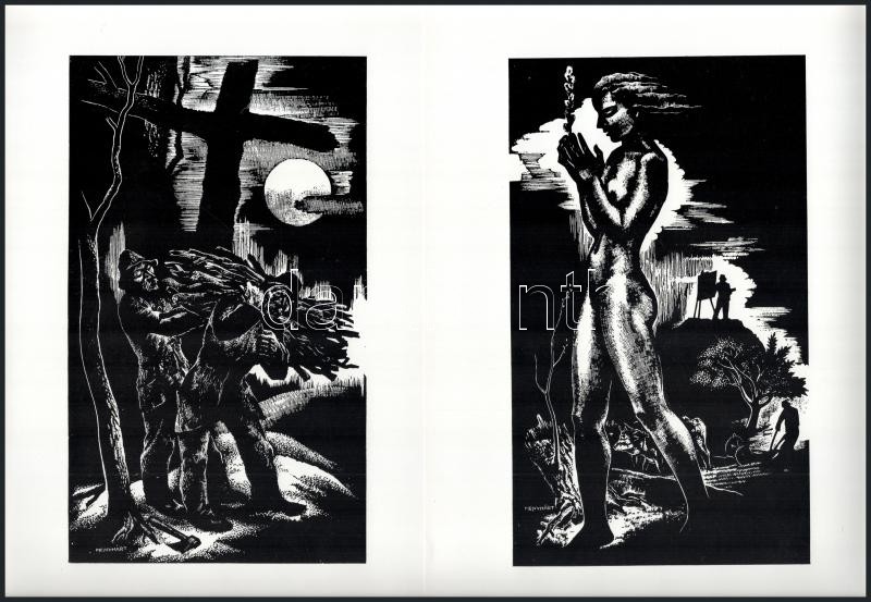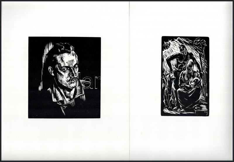 Description: 1960 Menyhárt József fametszetei. Debrecen, 1960, Alföldi Nyomda, 12 p. + 20 t. A Déri Múzeum Baráti Körének 2. kiadványa. Kádár Zoltán bevezetőével. Megjelent 500 példányban, az eredeti fadúcokról nyomtatva. Kiadói kissé sérült papírmappában. Komplett, hiánytalan!