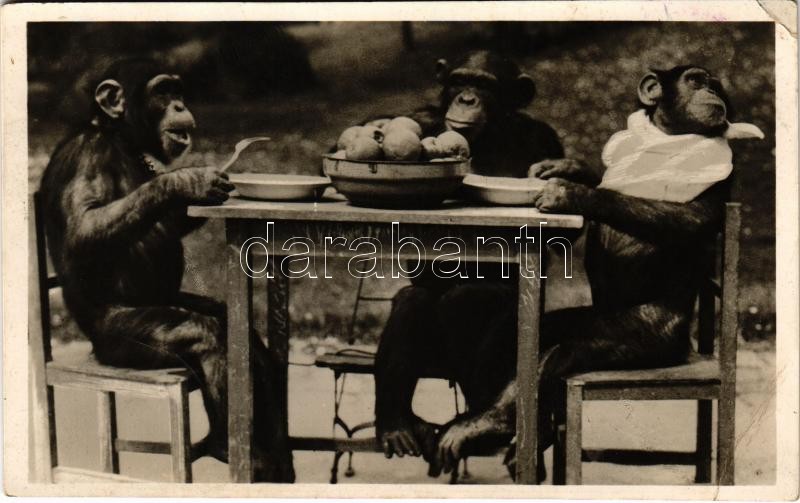 Csimpánzok úri étkezése a budapesti állatkertben. Hölzel Gyula felvéte... https://www.darabanth.com/en/407-Online-auction/407.0/Postcards/Animals~1000027/Csimpanzok-uri-etkezese-a-budapesti-allatkertben-Holzel-Gyula-felvetele-kiadja-Budapest-szC3~II2515750