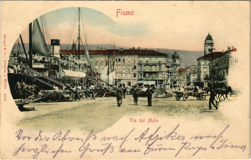 Fiume, Rijeka; Via del Molo / port, wharf, steamship