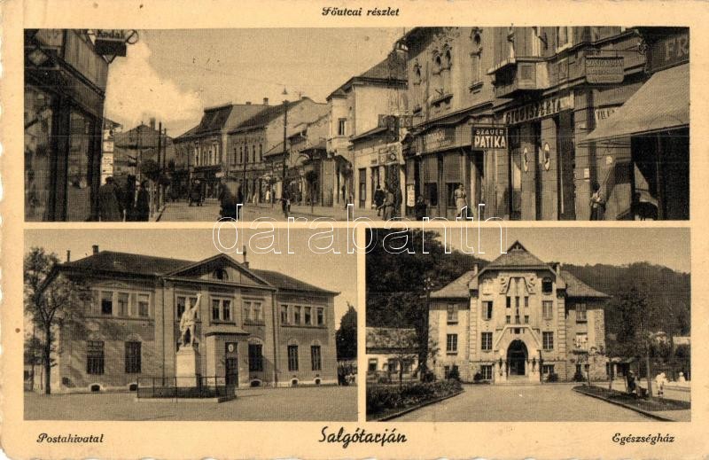 Salgótarján, Fő utca, postahivatal, egészségház, Szauer patika, gyógys...