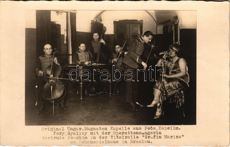 1925 Wroclaw, Breslau; Original Ungar. Magnaten Kapelle aus Pécs, Kape... https://www.darabanth.com/en/407-Online-auction/407.0/Postcards/Poland~1000050/1925-Wroclaw-Breslau-Original-Ungar-Magnaten-Kapelle-aus-Pecs-Kapellm-Fery-Gyallay-mit-der-Ope~II2518513