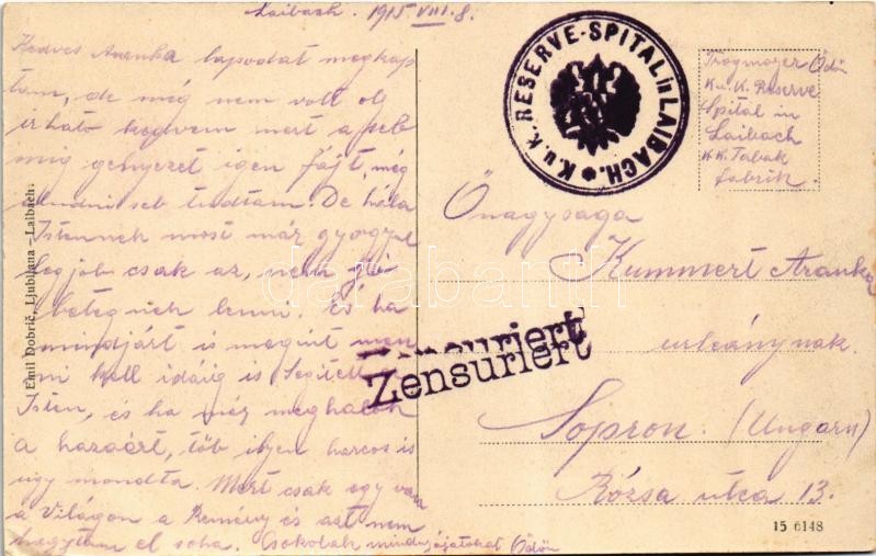 1915 Ljubljana, Laibach; Presernov spomenik, Lekarna, Kavarna / monument, pharmacy, café + "K.u.K. Reserve-Spital in Laibach" (EK)
