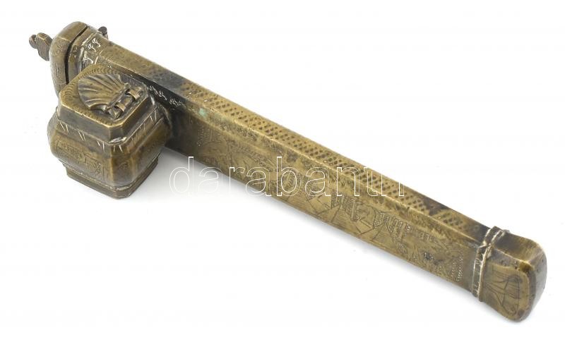 Toll és tintatartó, öntött réz, kopott, h: 24 cm