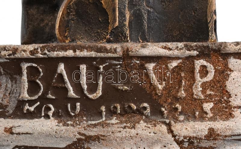 Szabolcs Péter (1942-): Az építészet allegóriája. Bronz. Kerámia talap...