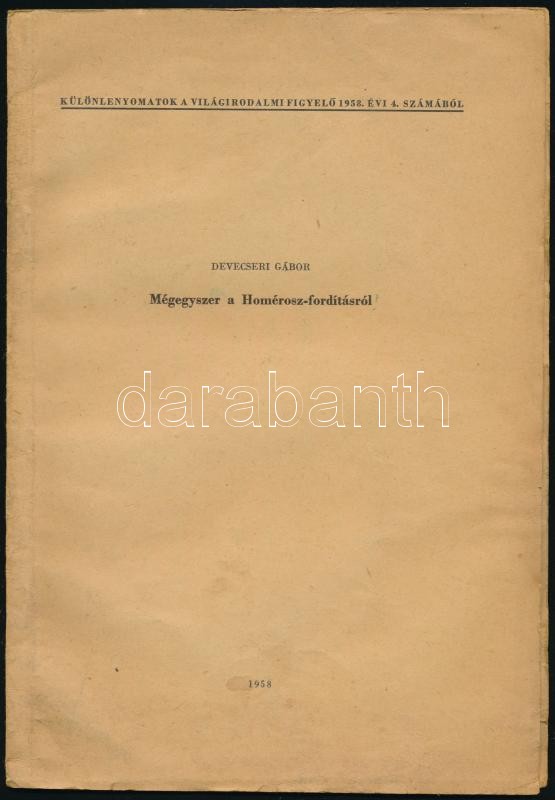 1964 Devecseri G... https://www.darabanth.com/en/408-Online-auction/408.0/Books/Books-Other-rarities~1000026/Devecseri-Gabor-mufordito-harom-dedikalt-kiadvanya--1964-Devecseri-Gabor-Homerosz-es-a~II2530635