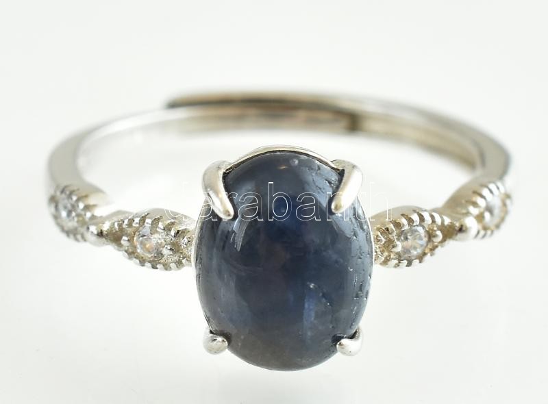 Ezüst(Ag) állítható gyűrű, zafírral, jelzett, bruttó: 2 g