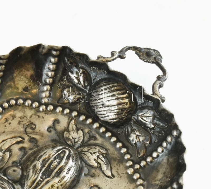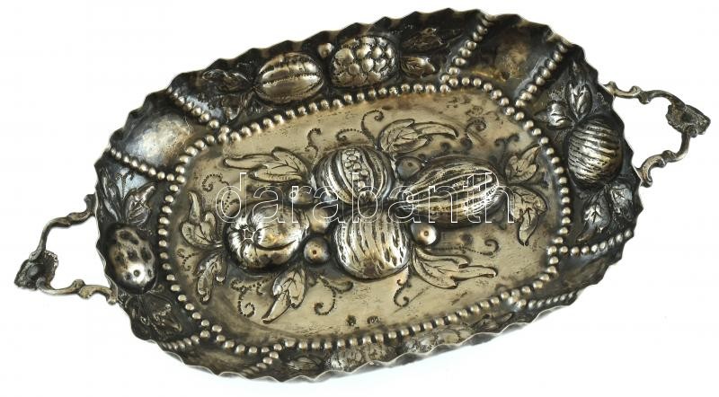 Ezüst(Ag) gyümölcsmintás tálka, jelzett, 20×10 cm, nettó: 69 g
