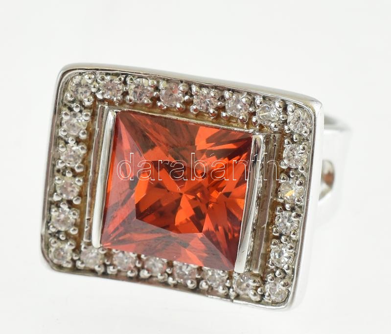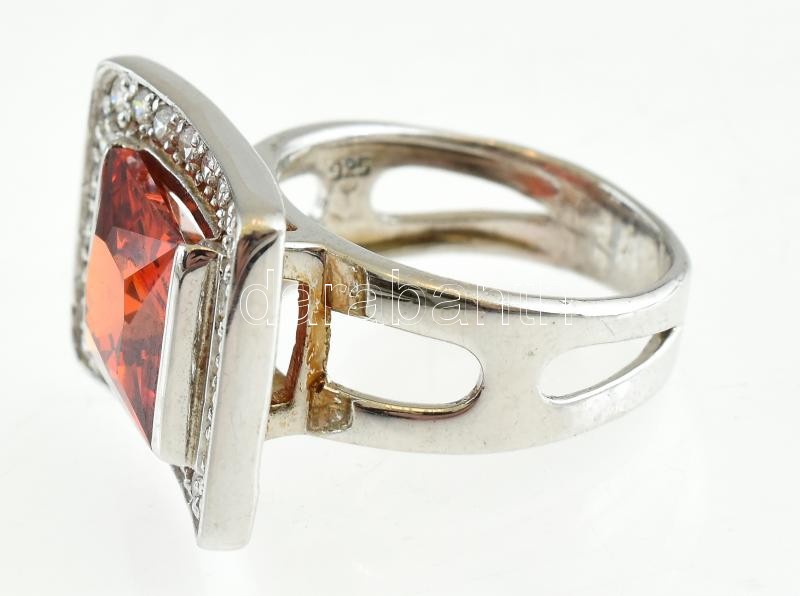 Ezüst(Ag) gyűrű narancssárga kővel, jelzett, méret: 54, bruttó: 8,53 g