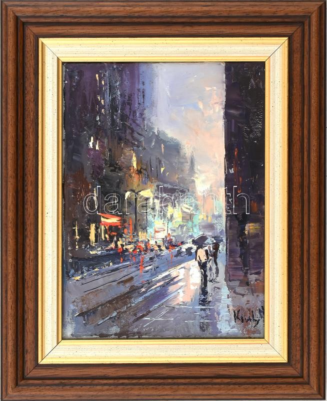 Király Nikoletta (?-): Esős impresszió. Olaj, vászon, jelzett, fa kere...