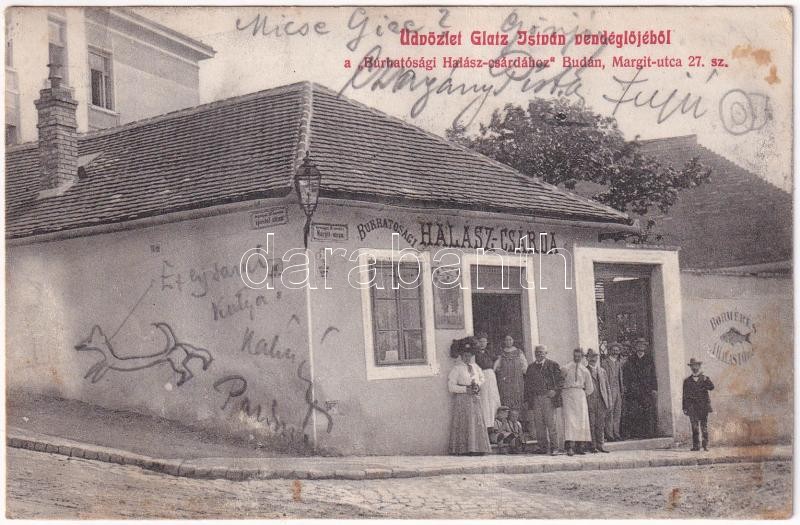 https://www.darabanth.com/en/408-Online-auction/408.0/Postcards/Hungary~1500005/1909-Budapest-II-Glatz-Istvan-vendegloje-a-Burhatosagi-Halasz-csardahoz-Budan-Margit-u~II2526737