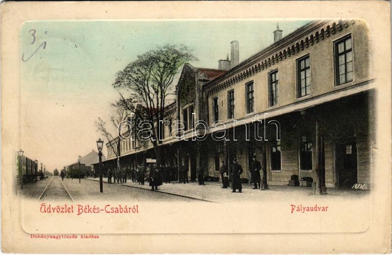 1910 Békéscsaba, pályaudvar, vasútállomás. Dohánynagytőzsde kiadása (EK)