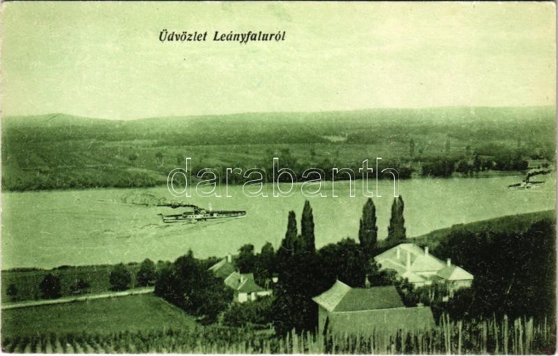 1921 Leányfalu, látkép, gőzhajó. Ecker Sándor kiadása (EK)