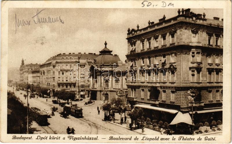 https://www.darabanth.com/en/408-Online-auction/408.0/Postcards/Hungary~1500005/1926-Budapest-XIII-Lipot-korut-es-Vigszinhaz-villamos-EK-plus-Europa-Uszobajnoksaga-S~II2528805
